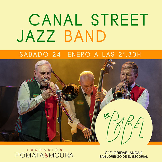 Con la Canal Street Jazz Band es imposible aburrirse o considerar que el Jazz es intelectual y minoritario. Nada que objetar y sí mucho que agradecer y aplaudir.” (Diario de Navarra) Dixieland Jazz, New Orleans Jazz, Jazz Tradicional…….diferentes nombres para la misma música. Un estilo creado en New Orleáns y representado en Madrid desde hace 50 años por la Canal Street Jazz Band. La Canal, con sus cinco miembros, cada uno aportando sus ideas, desarrollando no sólo un estilo de Jazz, sino creando un estilo propio de música que demuestra el suficiente gancho y energía como para contagiar la alegría propia del Jazz en casi todas sus vertientes. Con su experiencia transmite La Canal perfectamente el Jazz y corroboran su imagen de la banda con más solera de España. “Sencillamente luce una dignidad y una escuela envidiables.” La sección rítmica formada por Fernando Sobrino en el piano, Antonio Domínguez en el contrabajo, y Raúl Rodríguez en la batería, da un «swing perfecto apoyando las melodías tocadas por Yevhen Riechkalov en la trompeta, y Jim Kashishian en el trombón y voz.