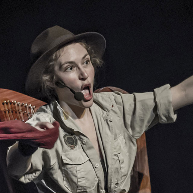 Tres histriónicos personajes (una concertista, una aventurera y una estudiante) nos desvelan su fascinación por el arpa, acercando al público este instrumento con entrega y pasión. Usando un estilo teatral puro y contundente, Camille Levecque se centra en el ritmo dramático y la precisión gestual para llevar intensamente a los niños y jóvenes al mundo de las emociones. El tono cómico y la ternura de los personajes, ya sea en sus logros, derrotas o miedos, establece una relación de gran complicidad con el público, quien al final del show puede probar el arpa con sus propias manos.