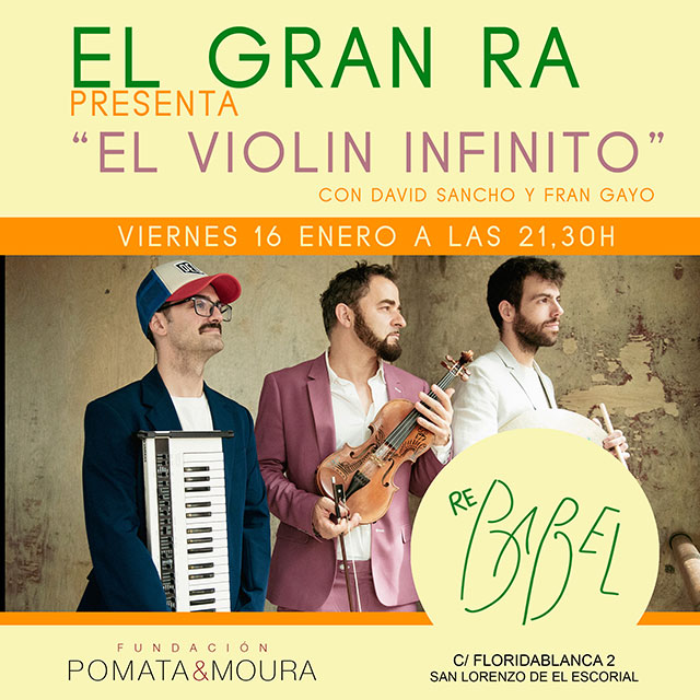 El violinista Raúl Márquez presenta su sello personal; “El Violín Infinito”, un proyecto inspirado en las músicas del mundo para plantear su trabajo debut y echar a volar sus composiciones originales y con ellas la imaginación del público. Después de investigar musicalmente en la copla, el flamenco y el swing, Raúl ha forjado un estilo propio en el que encuentra su universo musical a través de melodías cautivadoras y ritmos del mundo. El Gran Ra, es el nuevo alter ego con el que el artista va a compartir su música original a partir de ahora. El Gran Ra es un mago, un hipnotizador, un equilibrista, es un artista de circo. Siempre tiene un instrumento escondido bajo la copa de su sombrero.. A veces desaparece, y vuelve de repente, tocando sobre la torre de un campanario o sobre una barca. Pero cuando empieza a tocar, algo mágico sucede: atrapa al público