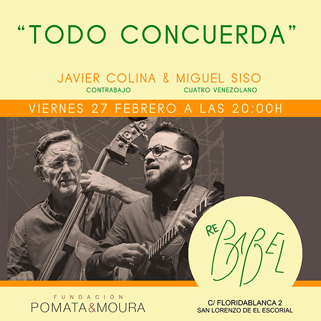 Miguel Siso y Javier Colina nos invitan a un diálogo profundo entre el cuatro venezolano y el contrabajo. El proyecto nace de una coincidencia musical en Madrid, donde ambos artistas al apenas conocerse ya conversaban a través de sus instrumentos. Desde ese instante, descubrieron una afinidad natural: Siso, fascinado por la música española, y Colina, gran admirador de la música latinoamericana hallaron un territorio común en el lenguaje de la improvisación y la raíz. En formato dúo, tejen un repertorio que viaja entre joropos, bulería, valses, boleros, merengue, sones, samba entre otros, uniendo los acentos de Venezuela, España y Latinoamérica en una propuesta íntima, fresca y virtuosa. “Todo Concuerda” es un viaje sonoro y emocional donde la música se convierte en puente, celebrando la hermandad entre culturas y el diálogo a Través del arte.