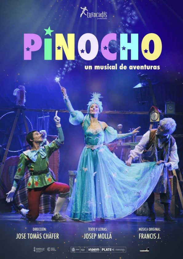 Con texto y letras de Josep Mollà, el teatro dentro del teatro es la clave para poder contar las aventuras de Pinocho en esta nueva propuesta de Trencadís. ¿Quién no ha jugado alguna vez a ser actor o actriz? A través de las ilusiones de Laura, una niña apasionada por el mundo del teatro, haremos un viaje a lo largo de las aventuras más conocidas del entrañable títere, con una partitura fantástica, voces en riguroso directo y grandes coreografías.