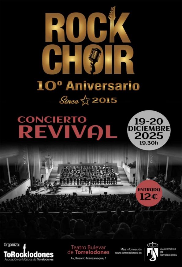 Hace una década, en 2015, este icónico coro de la Asociación de Músicos ToRocklodones debutó en este mismo escenario, el Teatro Bulevar, y ahora regresa con sus más de 90 voces y su potente banda en directo para revivir la magia de aquellos primeros conciertos.