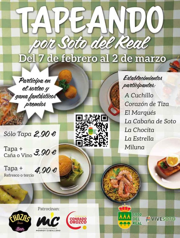 La iniciativa Tapeando por Soto regresa un año más para deleitar a los amantes de la buena cocina con las mejores creaciones de seis establecimientos locales. Durante cuatro fines de semana, desde el 7 de febrero hasta el 2 de marzo, los asistentes podrán degustar tapas únicas, elaboradas especialmente para la ocasión.