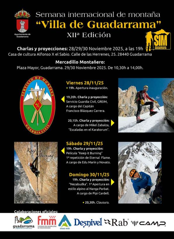 María José Cardell (Pipi), relatará su ascensión al Nanga Parbat, uno de los ochomiles más emblemáticos del planeta. Con esta experiencia se convierte en la primera mujer en abrir una vía en estilo alpino y sin oxígeno suplementario a un ochomil. Pipi Cardell es una de las destacadas montañeras españolas que ha llevado a cabo importantes hazañas internacionales, como parte del equipo de otro destacadísimo montañero, Denis Urubko. Un alpinista que ya visitó las jornadas de Guadarrama en 2022. La unión de Pipi con las montañas viene de lejos. Ascendió su primera montaña con su madre y su tía a los cinco años y desde entonces su relación con las cumbres no ha dejado de intensificarse. Como dato, su tía, Inmaculada “Macu” Fernández Morales, realizó la primera ascensión femenina andaluza de un ochomil, concretamente, la cima central del Shisha Pangma, 8008 metros, en el año 1992.